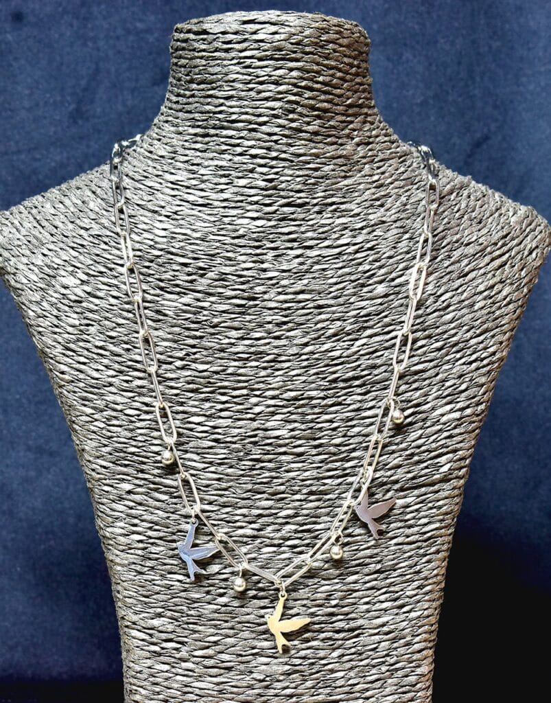 Το ασημένιο κολιέ με περιστέρια είναι ένα κομψό και διαχρονικό κόσμημα που θα προσθέσει λάμψη στο στυλ σας. Το κολιέ παρουσιάζει μια όμορφη λεπτομέρεια με περιστέρια, σύμβολο της ελευθερίας και της ειρήνης.
