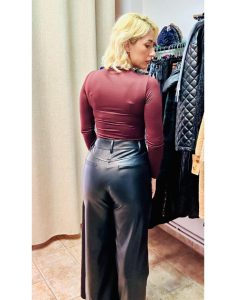 Αναδείξτε το στυλ σας με αυτά τα κομψά παντελόνια δερματίνης με εφέ κροκό.