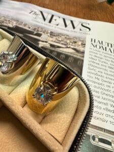 • Κι εδώ, η πέτρα συγκρατείται με τέσσερα δόντια, ενσωματωμένα στη χρυσή βάση.