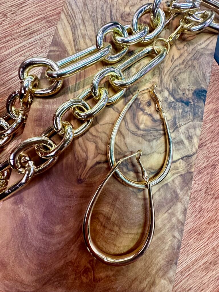 Τα σκουλαρίκια αποπνέουν έναν συνδυασμό κομψότητας και δυναμισμού. Το σχήμα σταγόνας τους είναι κλασικό, αλλά το παχύ, bold design και το λαμπερό χρυσό φινίρισμα τα κάνουν να ξεχωρίζουν. Είναι ιδανικά για γυναίκες που θέλουν να κάνουν εντύπωση χωρίς υπερβολές, προσθέτοντας μια πινελιά λάμψης και σύγχρονης αισθητικής σε κάθε εμφάνιση.