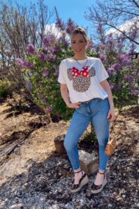 Η Minnie Chic είναι η απόλυτη επιλογή για όσες λατρεύουν την παιχνιδιάρικη αισθητική με στυλ! Άνετη, μοντέρνα και φτιαγμένη από εξαιρετικό βαμβάκι, αυτή η μπλούζα συνδυάζει το εμβληματικό σχήμα της Minnie με μια τολμηρή animal print πινελιά και εντυπωσιακό φιόγκο. Μία δήλωση μόδας για κάθε στιγμή της ημέρας!
