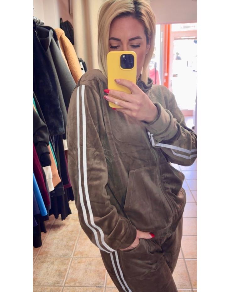 Απογειώστε το στυλ και την άνεσή σας με αυτό το πολυτελές βελουτέ σετ στην ιδιαίτερη και γήινη απόχρωση του πουρού (mocha/tobacco). Ένας συνδυασμός που αποπνέει ζεστασιά και κομψότητα, ιδανικός για τις γυναίκες που θέλουν να ξεχωρίζουν ακόμα και στις casual εμφανίσεις τους. Η μαλακή υφή του βελουτέ σε συνδυασμό με τις σπορ λεπτομέρειες το καθιστούν το απόλυτο must-have κομμάτι της σεζόν!