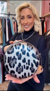 Η Wild Glam Round Bag είναι μια εντυπωσιακή στρογγυλή τσάντα με γυαλιστερό λεοπάρ μοτίβο, ιδανική για μοντέρνες εμφανίσεις. Διαθέτει διπλό φερμουάρ, ρυθμιζόμενο λουράκι και πολυτελείς λεπτομέρειες, συνδυάζοντας κομψότητα και πρακτικότητα.